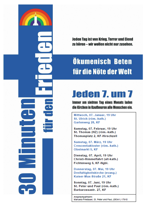 Immer am 7. Tag eines Monats laden die Kirchen in Kaufbeuren alle Menschen ein.