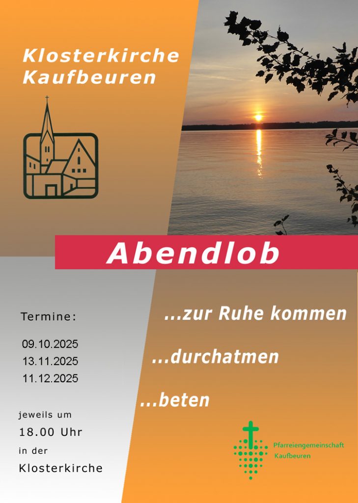 Mit Liedern, Psalmen und Texten, die sich am Stundengebet orientieren, wollen wir den Tag ausklingen lassen, zur Ruhe kommen, durchatmen und gemeinsam beten.