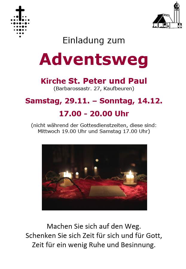 Willkommen in unserer Pfarrei St. Peter und Paul. Sie ist die jüngste Pfarrei der Pfarreiengemeinschaft Kaufbeuren.