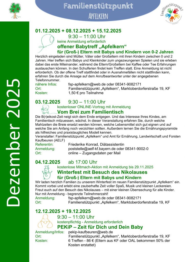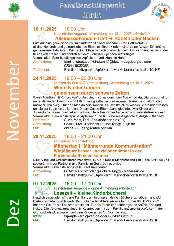 Aktuelle Angebote – Familienstützpunkt „Apfelkern“