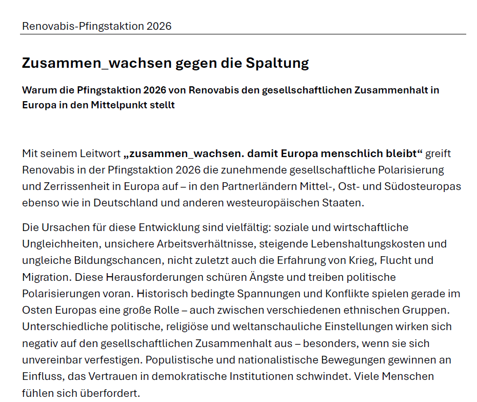 2. Renovabis Pfingstkollekte am 24. Mai